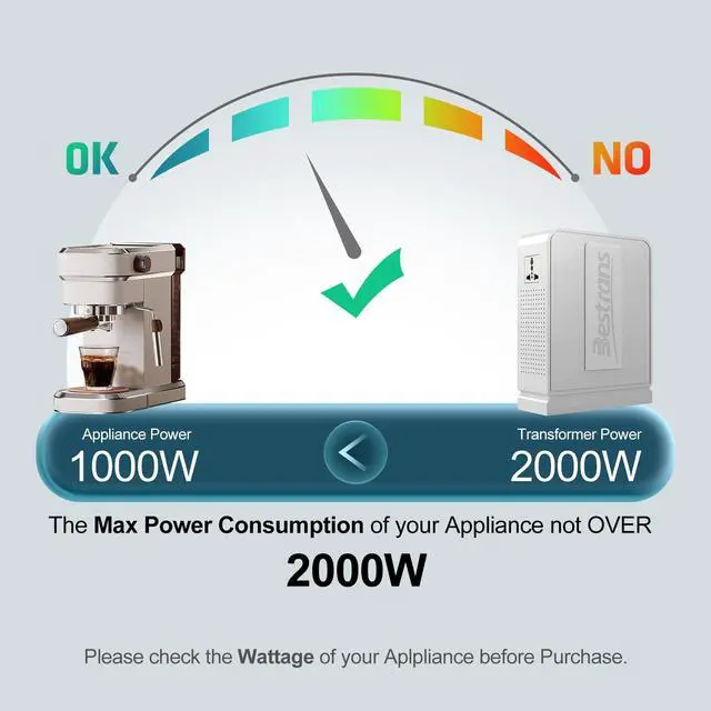 Stable Conversion: This 110v to 220v converter delivers consistent 220V power for European/Asian appliances in the US, featuring a robust 2000W capacity to handle high-wattage devices without voltage drops ^^