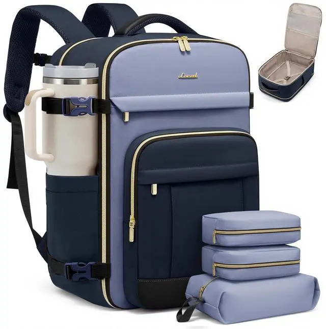Capacity: Featuring 5 main compartments, this backpack easily accommodates essentials for 3-5 day trips. Organize clothes, shoes, and electronics effortlessly, making it perfect for both business and leisure travel. Side pockets accommodate large water bottles for hydration on the go ^^ Includes Packing Cubes & Wet Pocket: Stay organized and neat with 3 additional packing cubes and a wet pocket for toiletries and damp items. Keep your belongings dry and easily accessible throughout your journey ^^ Durable and