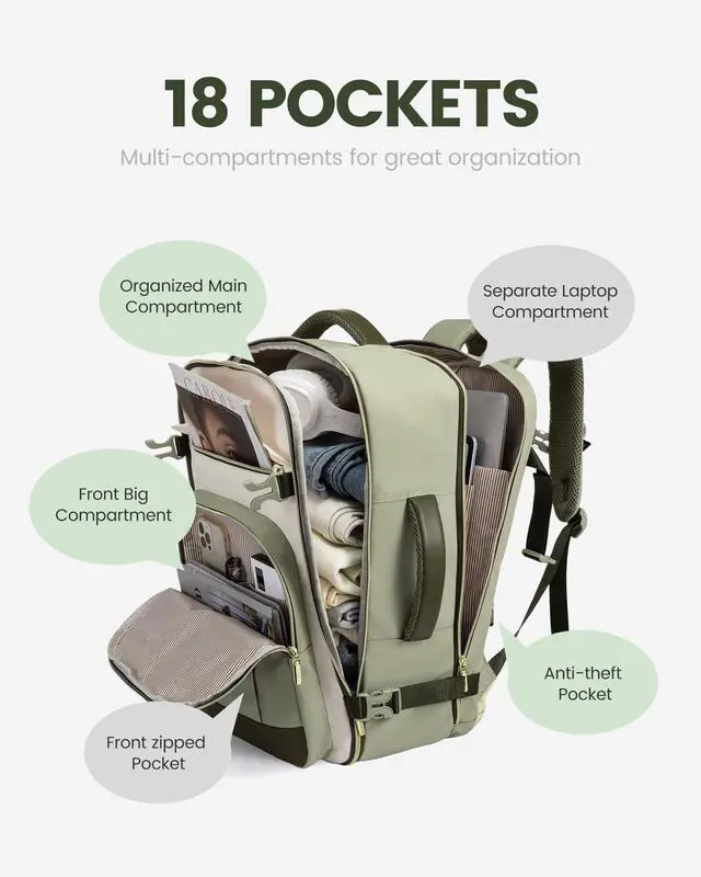 Airline-Approved Carry-On Size: This travel backpack (18x14x8 inches) is perfect for budget airlines like Spirit, Frontier, and Jet Blue, fitting seamlessly under seats and in overhead compartments. Ideal for hassle-free travel ^^ Spacious 40L