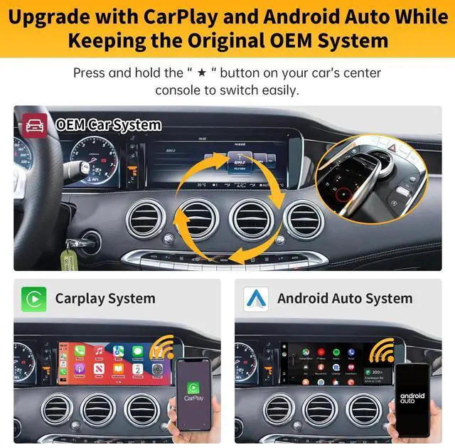 Pre-shopping NotesOur Wireless Carplay is compatible with left-hand and right-hand drive Mercedes Benz C Class W205 and GLC Class X253 from 2015 to 2018, including models with NTG 5.0, NTG 5.1, and NTG 5.2 systems. This includes various models such as C180, C200, C250, C300, C350E, C43 AMG, C45 AMG, C63 AMG, C63 AMG S, GLC250, GLC300, GLC350e, GLC43 AMG, and GLC63 AMG. ^^ Support Wireless/Wired Carplay & Android AutoSupport Wireless Or wired Connection way depends on your phone type. Our unit can work with Siri/ Maps/ Music/ Phone Call.