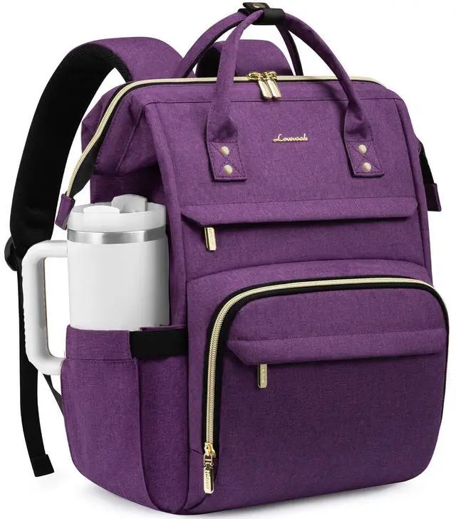 LOVEVOOK Laptop Backpack for Women with Giant Tumbler Holder Pocket,15.6 inch Waterproof Travel Backpack Purse Computer Laptop Bag,Professional Work College Nurse Teacher Backpack Daypack,Dark Purple
