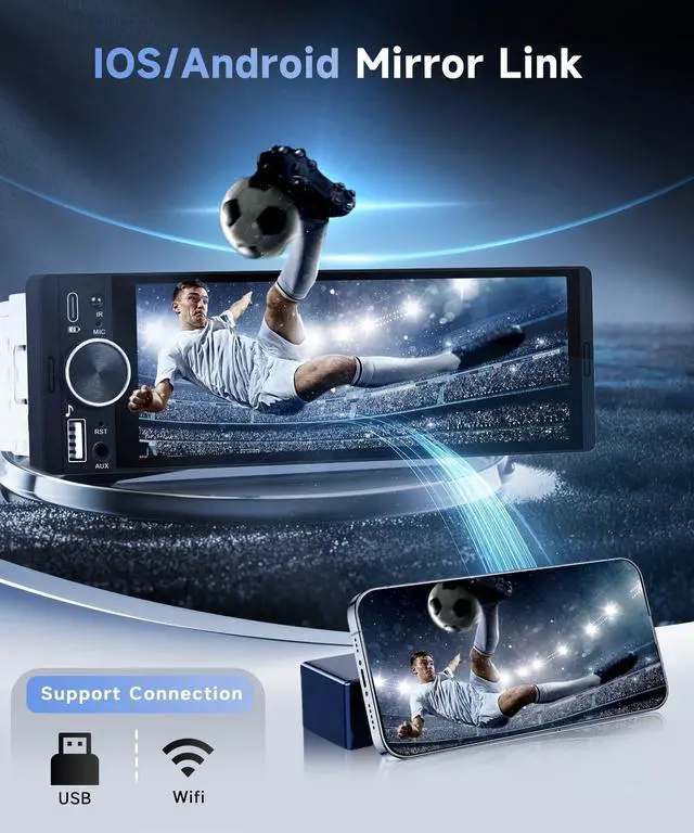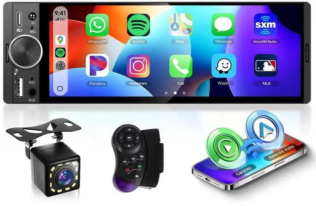 ^^ Backup Camera & Steering Wheel ControlThis single din car radio comes with a rear backup camera that helps improve safety when parking and reversing. The screen automatically switches to the rear view when you reverse the vehicle to better observe surrounding obstacles. It also supports steering wheel control, enabling you to adjust volume, switch songs and answer calls easily without taking your hands off the steering wheel for safer and easier operation. ^^ Reliable Performance & All-In-One FunctionalityThis single din car stereo combines essential multimedia and connectivity features to enhance your overall driving experience.