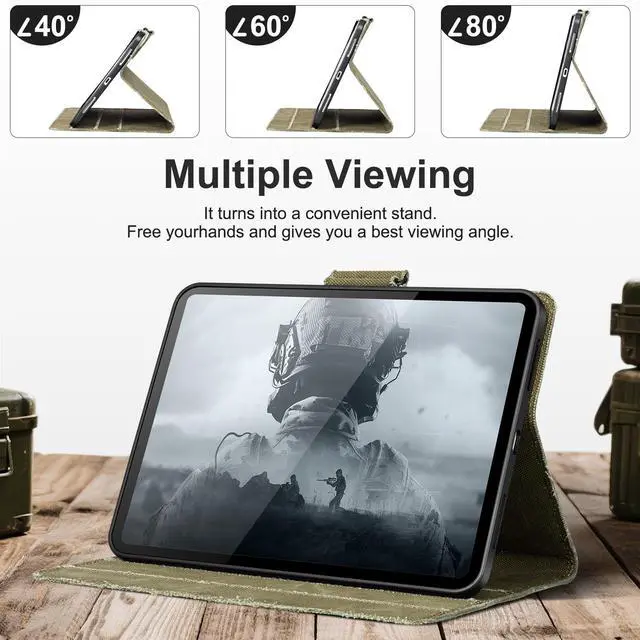 ^^ Military-Grade Ultimate Protection: this iPad case offers superior defense against accidental drops, bumps, and shocks. Have peace of mind knowing your device is safeguarded in daily commutes and travels. ^^ Multi-Angle Viewing Stand & Hands-Free Use: The built-in adjustable stand allows you to prop your iPad at multiple stable angles for comfortable video watching, typing, video calls, or following recipestrue hands-free convenience. ^^ Auto Wake/Sleep & Precise