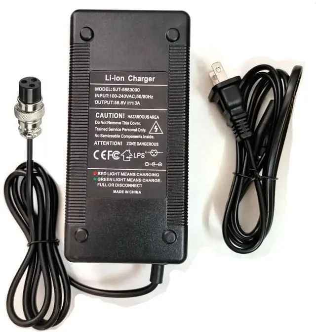 Specification: 58.8V 3A(Compatible with 2A, 1.8A ) 3-Prong Charger for 52V/ 50V 14S Li thium
