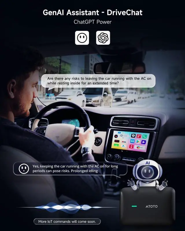 ChatGPT Car Assistant: ChatGPT is integrated into this smart box. DriveChat, featured GenAI, supports users to make AI conversations, get expert advice from Chatbots, and use more AI commands after updates ^^