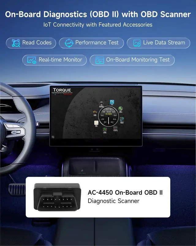 Bluetooth OBD II: An AC-4450 Bluetooth OBD II Car Diagnostic Scanner is included in the package. The car scanner pairs effortlessly to realize On-Board Diagnostics (OBD II), and you can directly view car information on the screen ^^
