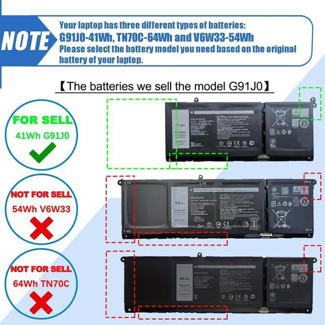 Attention pleaseThe batteries we sell are of model G91J0. These laptops have a total of three different types of batteries(G91J0-41Wh, TN70C-64Wh and V6W33-54Wh), Please choose the which one you are going to replace and according to your laptop's original battery ^^ Customer ServiceRest assured with 30 days Refund and 12 months