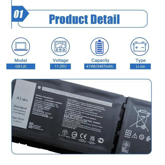 Battery Color: Black ^^ Compatible Battery P/N G91J0 FH3K2 0FH3K2 0VKYJX 0MVK11 0XDY9K PG8YJ 0PG8YJ 927N5 0927N5 MGCM5 0MGCM5 0WV3K8 JGCCT N9XX1 V6W33 TN70C ^^ Compatible Laptop ModelsFor Dell Latitude 3320 3330 3420 3430 3520 3530 Series; For Dell Inspiron 15 3510 3511 3515 3520 3525 3530 3535, Inspiron 13 5310 5320 5330, Inspiron 14 5410 5415 5418 5420 5425 5430 5435, Inspiron 14 Plus 7420, Inspiron 15 5510 5515 5518, Inspiron 16 5625 5630 5635, Inspiron 14 5410 2-in-1, Inspiron 14 7415 2-in-1, Inspiron 14 7420 2-in-1, Inspiron 14 7425 2-in-1, Inspiron 14 7430 2-in-1, Inspiron 14 7435 2-in-1, Inspiron 16 7620 2-in-1 Series; For Dell Vostro 13 5310 5320, Vostro 14 3420 3425 3430 3435 3440 5410 5415 Series, Vostro 15 3510 3511 3515 3520 3525 3530 3535 5510 5515 Series, Vostro 16 5620 5625 5630 5635 5640 series ^^