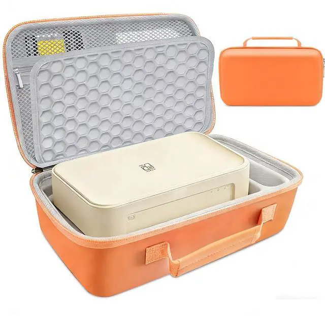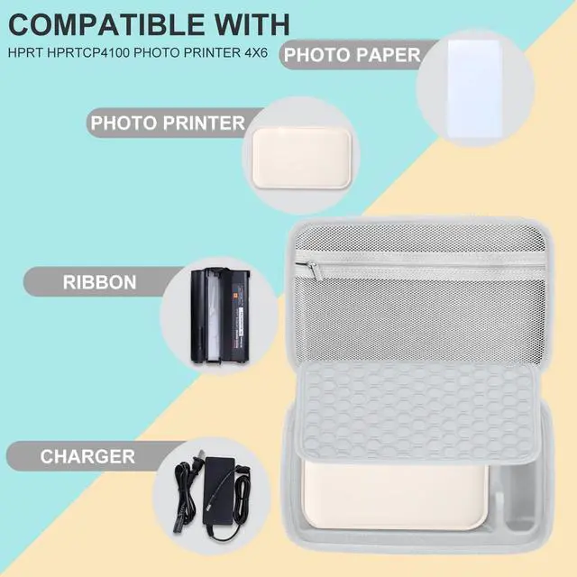 This hard carrying traveling case is deigned for HPRT CP4100 4x6'' Printer is custom-designed to fit photo printer snugly and securely, the bottom compartment ensures the device stays in place during transport. ^^ The storage case is made of high quality EVA material, this Waterproof Dustproof Printer Case shields your 4x6 portable photo printer from splashes, dust and impacts. ^^ The protective case features a soft velvet lining and double zipper design, effectively preventing scratches and damage to your device. It allows for quick and easy access to your 4x6-inch photo printer and accessories, providing peace of mind when traveling.