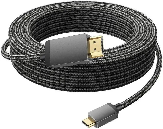 Long USB C to HDMI Cable 25FT, 4K High Speed Type-C to HDMI Cord-Braided,Thunderbolt 3/4/5 Compatible for PC,Monitor,TV,Projector,Galaxy S8 to S24/S25/S26,iPhone 15/16/17,MacBook,iPad Pro,Dell XPS