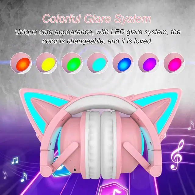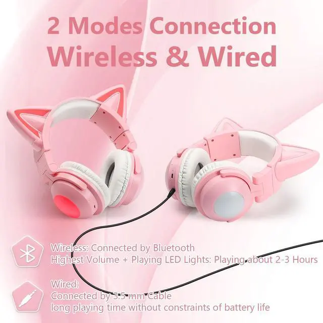 Cute Design & Flashing Led Lights: Elevate your style with these cat ear Bluetooth headphones featuring adjustable colorful LED lights. Whether you're traveling or enjoying outdoor activities, the shinning cat ears and earcups will make you look stylish and attractive. Please note that the LED lights and built-in microphone only work in "Bluetooth" mode, not in "wired" mode.