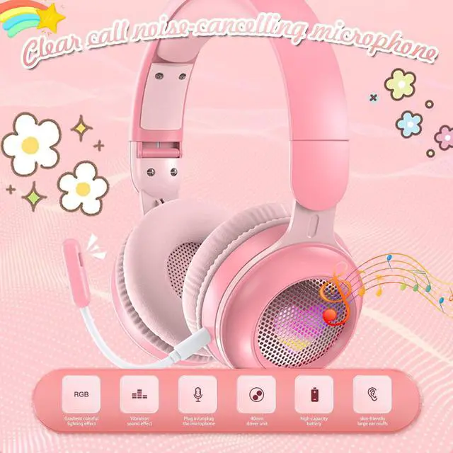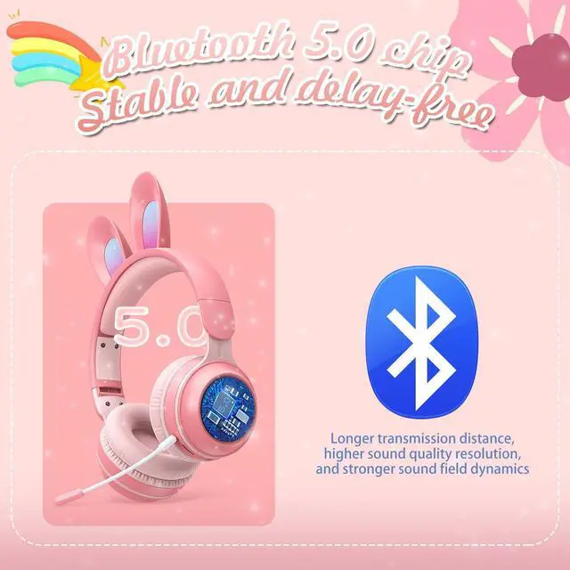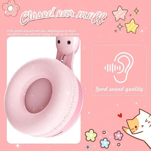 Kid-Friendly DesignThese Bluetooth headphones are specially designed for kids with adorable cat ears and paws to make them look stylish and fun. ^^ Wireless ConvenienceThese kids' wireless headphones connect to any Bluetooth-enabled device with ease, allowing kids to enjoy their music or video games wirelessly. ^^ Superior Sound QualityThese Bluetooth headphones for kids feature powerful and balanced audio technology, delivering crystal-clear sound for an immersive experience. ^^ Safe Listening These Bluetooth headphone ear cups are designed to be safe for kids' ears, limiting the maximum volume to protect their hearing from damage. ^^ Ideal Gift ChoiceThese wireless headphones for kids make an excellent gift for any child who loves music, gaming, or watching videos on their devices, making them a perfect birthday or holiday present.