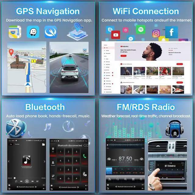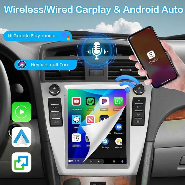 Newst Android Car Radio Stereo (2+64GB)Inefala android car radio for toyota camry 2006-2011 with 9.7 -inch HD Capacitive Touchscreen. Android 15 OS, 2GB RAM and Octa 4-core CPU, 64GB ROM. If you have any questions about the product, please feel free to ask us ^^ Wireless Carplay Android Auto & Mirror LinkThe android car touchscreen for toyota camry connects to your smartphone via wireless Carplay or Android Auto features. Allows you to access online maps from GPS navigation apps such as Goo-gle and Waze. Android and iOS cell phone mirroring link for viewing cell phone information ^^ WiFi & GPS NavigationOur carplay radio for toyota camry easily connects to wifi so you can watch online videos or provide accurate real-time location and gps navigation while supporting gps using mapping applications such as google maps and waze ^^ Bluetooth, FM/RDS Radio, EQ This android car stereo for toyota camry comes with Bluetooth ensures faster data transmission speeds, enabling hands-free calling, phonebook downloads, and music streaming.