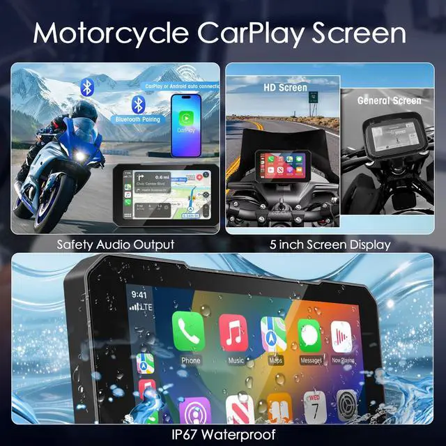 Bluetooth Hands-free: Carplay Motorcycle has Bluetooth connectivity, pair your phone to the carplay touch screen via Bluetooth, pair your Bluetooth helmet/earphone, convenient to adjust the volume, switch songs and make hands-free calls by your helmet or earphone. Enjoy the freedom of seamless connectivity and enhanced functionality while riding ^^ 5 Inch Touch Screen & IP67 Waterproof: The car play motorcycle with 5 inch HD screen of high resolution, making the visual effect more intuitive and the touch responsive, and the motorcycle android auto display features IP67 waterproof can provide a clear and wonderful viewing experience even under bright outdoor sunlight or rainy day ^^ Mirror Link for