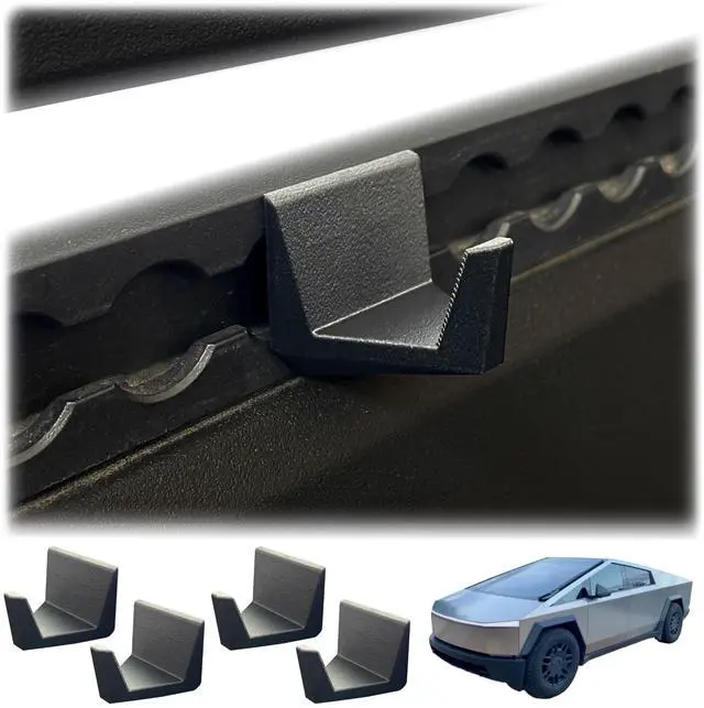 SECURE YOUR CARGO - Whether youre hauling groceries, gear, or other loose items, these hooks provide a secure way to keep everything in placeno more bags rolling around your truck bed! ^^ EASY INSTALL - Unlike most L-track accessories that require special screws or tools, these hooks install in seconds. Simply slide them into the track and they securely click into placeeffortless and frustration-free. ^^ DESIGNED FOR THE CYBERTRUCK - Most generic L-track accessories dont match the Cybertrucks unique style. These hooks were engineered with an angular, OEM-inspired design that seamlessly blends with the trucks futuristic aesthetic.
