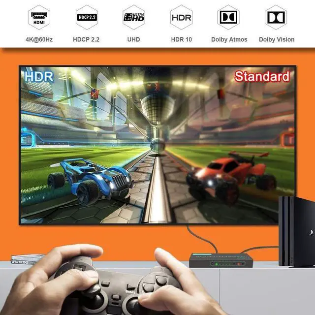 YCbCr 4:4: 4, supports HDR10, Dolby Vision, Dolby Atmos, 18Gbps, HDCP 2.2, 36bit/1080P, 3D ^^ Broad CompatibilitySkycropHD HDMI Switcher works with the latest HDMI 2.0 devices like PS4 Pro, Xbox One S/X, UHD Blu-ray player, Roku Ultraalso backwards with HDMI 1.4 and 1.3 ^^ Auto and Manual SwitchSupports manual switch by IR remote or pressing button on the switch box; auto switch function can be turned on/off to your preference ^^ Premium Product QualityMade by durable metal enclosure for quick heat dissipation and excellent longevity; Lifetime professional technical support