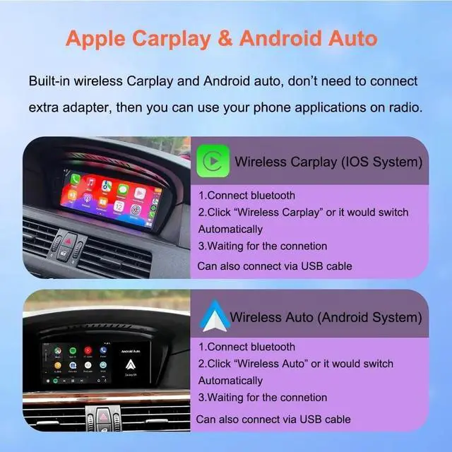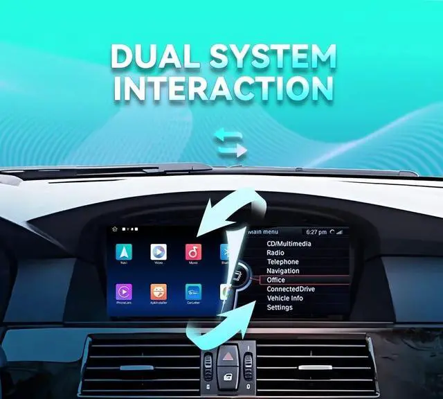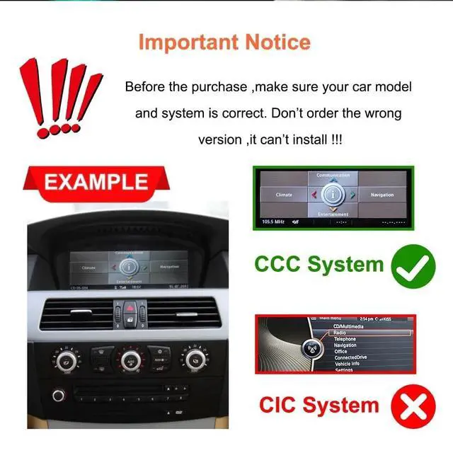 Original CIC SystemTips: The device makes sound through original aux output, if your original car doesn't have aux, please go to the local car workshop to activate aux to make sound. or buy Fiber Optic box to connectFeatures*Android System and OEM system can change freely. *Supports displaying many car information, such as oil, fuel, speed, temperature, parking brake, door information, etc. *Supports Original Function, retain original cd player, steering wheel control, idrive knob control, speaker etc.