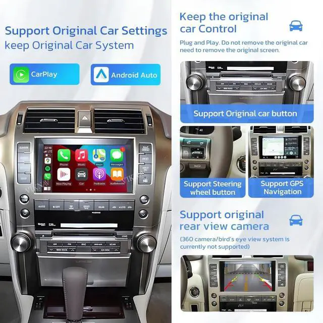 Compatible With Car modelFit For Lexus GX460 2009 2010 2011 2012 2013 original car radio oem screen, our this linux system decorder box equipped with wireless carplay android auto, retain your original car screen to upgrade carplay android auto, and support your original car all function, it will retain the original car system and will linux system, plug and play, if your are not sure for those car model please contact us ^^ Support Wireless Carply & Andriod AutoThis linux box to upgrade for lexus gx460 car radio equipped with Wireless CarPlay and Android Auto, long press the HOME button on control center or VOICE button on steering wheel to Carplay console, Pair the Bluetooth of the decoder with your Iphone or Android phone, Then follow the smartphone guide to connect the wireless CarPlay or Android auto.
