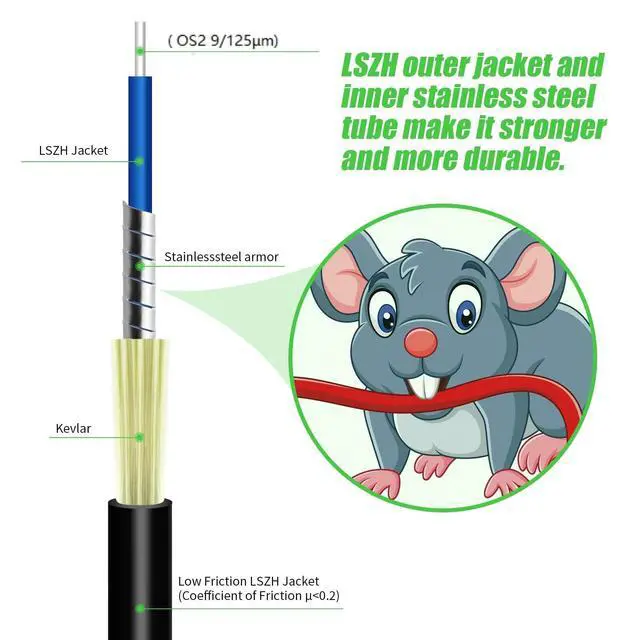 Wide Compatibility: This OS2 SCA to SCA single-mode armored fiber optic cable is Compatible with all standard fibre optic equipment and connectors, suitable for telecommunications networks, data centers, and industrial environments. ^^