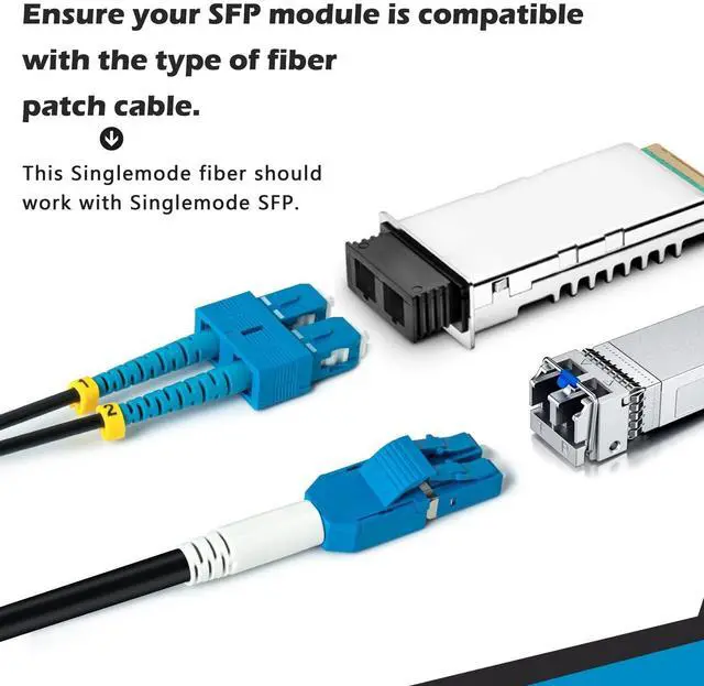 LC UPC to SC UPC OS2 Fiber Patch Cable: with further distances than multimode specifications. OS2 fiber can transport data at 100G for up to 10km using a 1310nm transceiver, or up to 40km using a 1550nm transceiver.