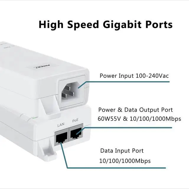 Build-in detection chip inside, which will detect and classify PD before powering it (Active PoE), Protection of non-standard devices ^^ complies to IEEE 802.3 af/at/bt, PoE++ standard ^^ Support transmission rate of 10/100/1000Mbps (Gigabit), protect output against over voltage, over current, short circuit. Low power devices receive only the power they need ^^ Connect with normal switch to exchange data, provide sustained and stable power through Cat5e/Cat6 cable to remote PD, effective distance is 300ft ^^ Manufacturer supply directly with two-year warranty and unlimited technical support, Wall mounted with mounting hole or placed on desk