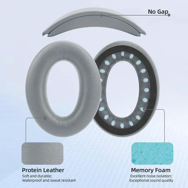 ^^ Premium Materials: Protein leather ear cushions are typically durable, resistant to wear and easy to clean. Inner memory foam provides a softer and more comfortable feel, reducing pressure and discomfort during long listening sessions.