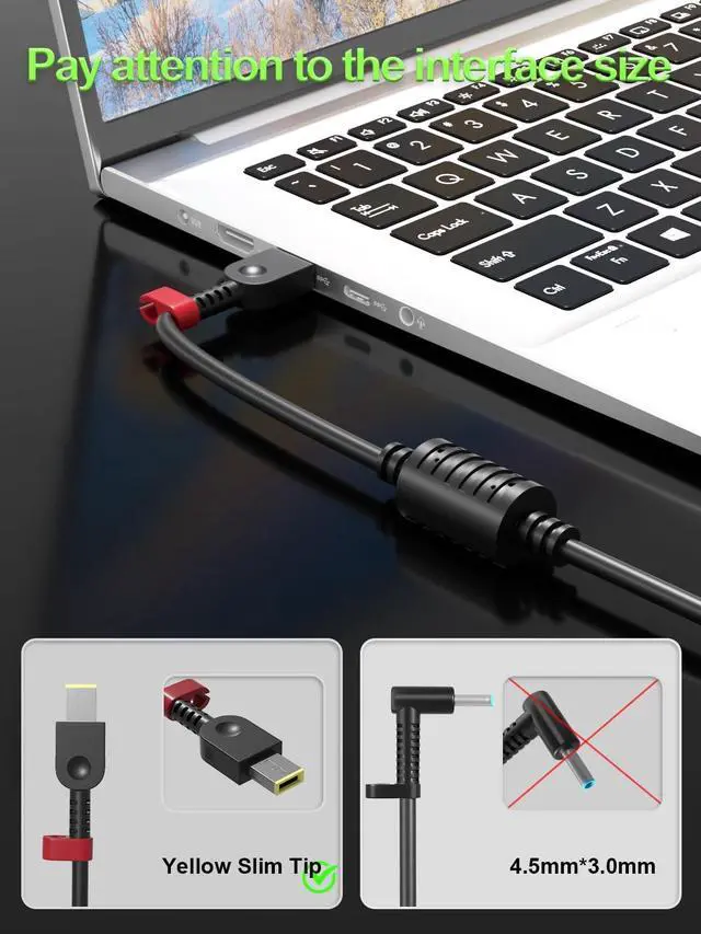 (Note: Please ensure your connector type is Square Yellow Slim Tip before purchasing. ) If your model requires 20V/ 11.5A output, this well-designed adapter is ideal. ^^ Overheat Protection, Safe and ReliableYour safety is our top priority. This power adapter features a smart chip and advanced Load Break System (LBS) technology, providing comprehensive overcharge, overheat, and short-circuit protection. Made with high-temperature resistant and flame-retardant materials, it maintains low operating temperatures even during non-gaming use, extending battery life and ensuring home safety. ^^ Fast ChargingPerforms identically to the original device, this power adapter supports fast charging technology, charging from 0% to 100% in just 0.6 to 1.2 hours (depending on power capacity). The intelligent internal chip detects your device's temperature and battery status to optimize charging speed, reducing heat generation and improving energy transfer efficiency. This is a smart way to continue working in the office, at home, or while traveling. ^^ Portable DesignWhether traveling or on business trips, this power adapter (weighing only 708 grams) is the perfect companion for business trips, vacations, or commuting between the office and home.