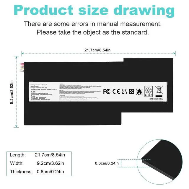 Cell: 3Cells; 100% brand new from manufacture. Grade A cells ensure fast charges and low power consumption. ^^ Compatible Part NumberBTY-M6K MS-17B4MS-16K3 MS-16W1MS-16R4 MS-16R1 MS-16R3 MS-17F1MS-17F2MS-17B7 MS16-R2. ^^ Compatible Laptop Models For MSI GF63 Thin 8RB 8RC 8RD 9SC 9SCXR 10SCSR 10SCXR, MSI GS63VR 7RG Stealth Pro, MSI GF65 Thin 9SD 9SE 9SEX 9SEXR 10SD 10SDR 10SE 10SER, MSI GS73 8RF Stealth, MSI GS73VR 7RG Stealth Pro, MSI GF75 Thin 3RD 8RC 8RD 8RX 8SC 9SC 9SCX 9SCSR 9SD 10SCS 10SCXK 10SCXR, MSI WS63 8SK 8SL Mobile Workstation, MSI WP65 9TH, MSI WF65 10TH 10TJ WF75 10TI 10TJ, MSI Bravo 15 A4DCR, MSI Bravo 17 A4DDR.