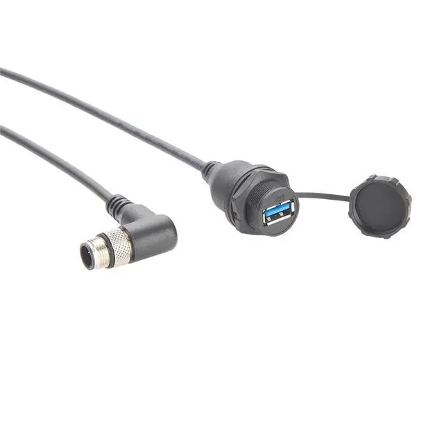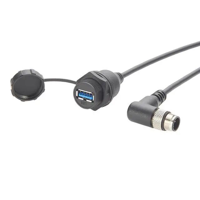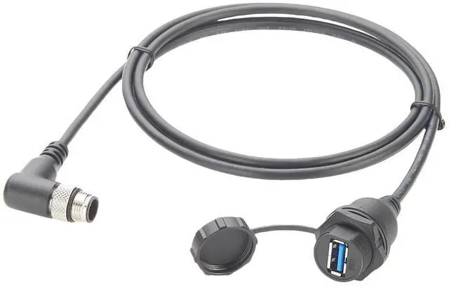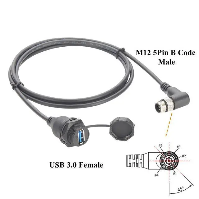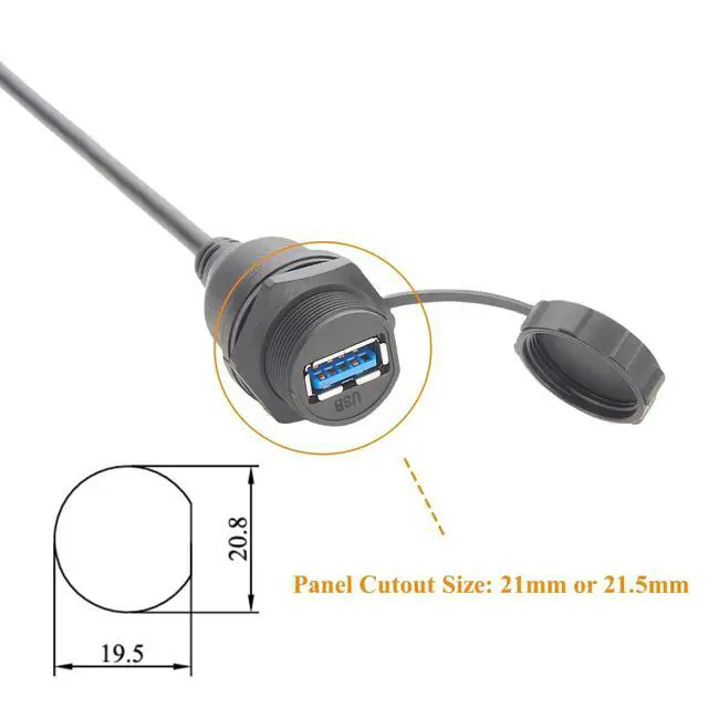Industrial USB to M12 Extension USB 3.0 A female connector for panel mounting and M12 B-coded male for robust industrial connection. for installation in control panel or dashboard. ^^ IP67 Protection Bulkhead USB female to m12 B Code male Cable With waterproof cap, meets IP67 rating, providing excellent protection against water, dust, and oil in harsh environments. ^^ Flush Panel Mount Use an existing hole or cut a 21~ 21.5 mm hole in your dashboard. No welding, no screw fast installation design. for installation in control panel or dashboard.