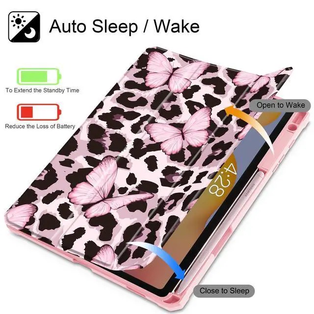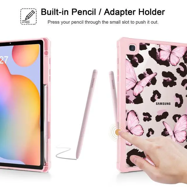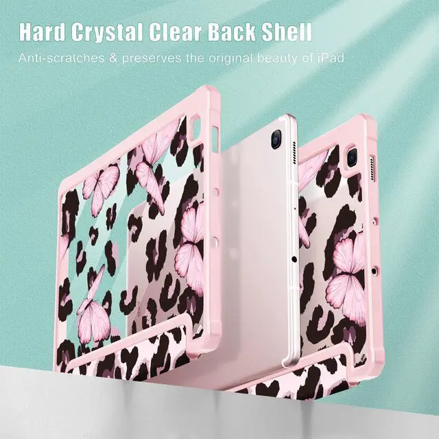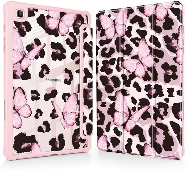 Mektron Case for Samsung Galaxy Tab S6 Lite 10.4 Inch 2024/2022/2020 with S Pen Holder, Multi-Angle Viewing with Shockproof Cover Clear Shell + Trifold Stand + Auto Wake/Sleep, Leopard Pink Butterfly