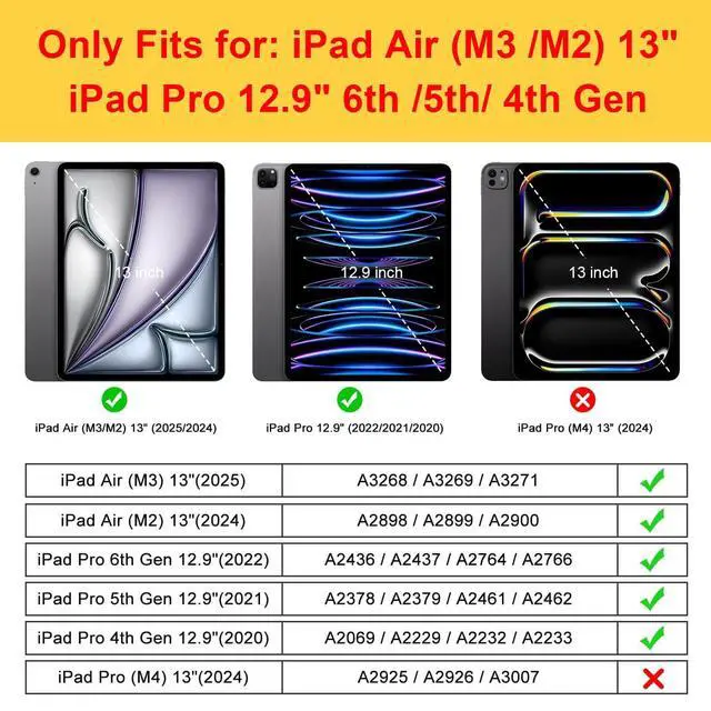 Perfect Fit & Compatibility: Designed exclusively for iPad Air 13 Inch 2025/2024, iPad Pro 12.9 6th/5th/4th gen ensuring precise cutouts for cameras, ports, and buttons ^^