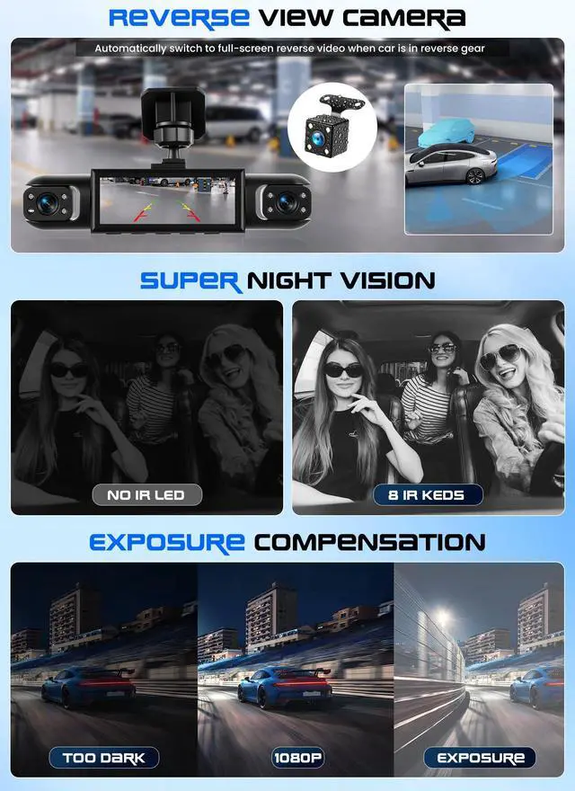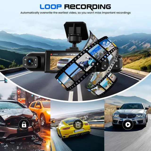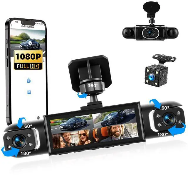 [FOUR-CAMERA SYSTEM FOR TOTAL SURROUND AWARENESS] - See everything, everywhere. This innovative dashcam front and rear camera system utilizes four cameras (one front, two side, one rear) to provide a virtual 360view around your vehicle. The three front-facing lenses are adjustable, allowing you to capture crucial details and eliminate dangerous blind spots, transforming your car camera into a complete monitoring solution