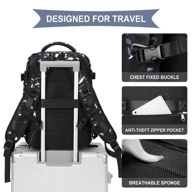 Multifunctional Backpack: Hybrid (Backpack, Duffel Bag, Shoulder Bag, Travel Bag). Can be served as everyday backpack, professional backpack for laptop or daily use anywhere for weekend, casual getaway ^^ With Trolley Sleeve & Anti-theft PocketA trolley sleeve on the back allows the travel backpack to attaches to the handle of a carry-on luggage for hands-free transport, easier carrying. With a hidden anti theft pocket on the back protect your valuable items from thieves.