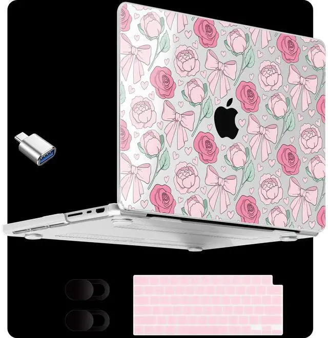 Package Includes: Including 1 Case, 1 matching Keyboard Cover, 2 Webcam Covers and 1 Silver OTG Adapter. Matching keyboard cover can effectively prevent keys from wearing. Webcam cover can prevent network viruses from illegally accessing your personal privacy. This USB Type-C to USB connector also supports synchronous charging to your phone and tablet with data transfer. At the same time, it supports OTG function to load USB flash disk directly