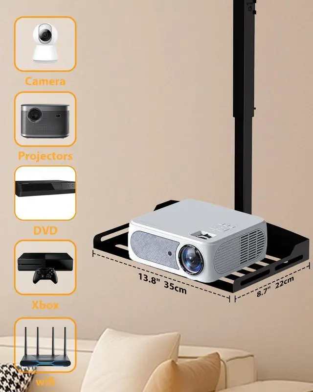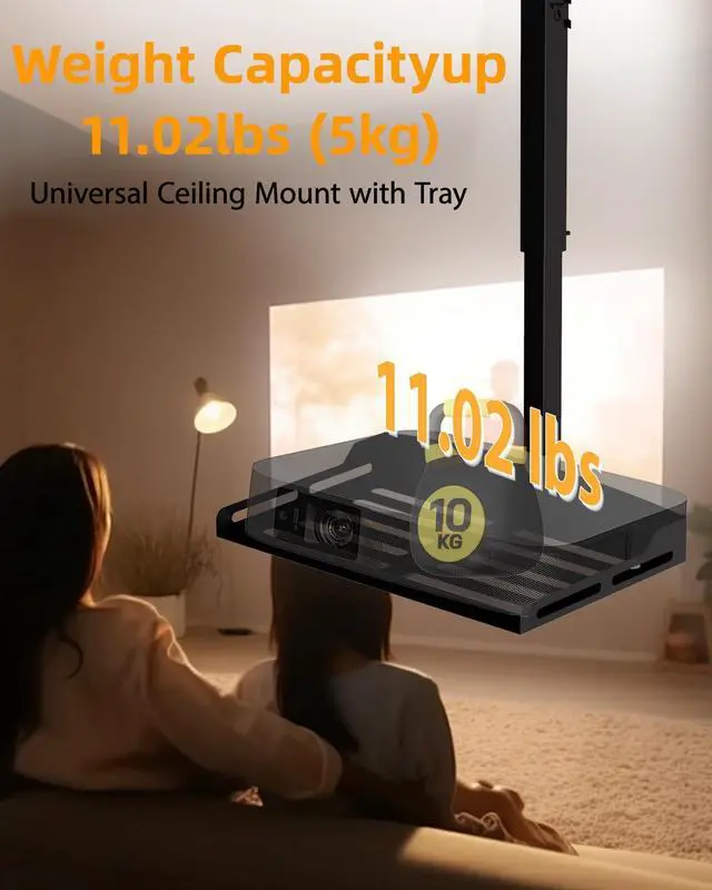 Weight Capacity: Supports most projectorsincluding models without mounting holesas well as cameras, laptops, and other AV equipment. The sturdy 13.8" x 8.7" metal tray safely holds up to 11 lbs, making it ideal for home theaters, offices, and studio setups. ^^ Adjustable Height for