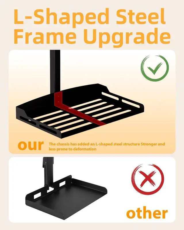 Vented Tray: Designed with a fully vented tray base to improve airflow and prevent projector overheating. This practical design ensures your projector stays cool during extended use, protecting your device and allowing for longer, uninterrupted viewing sessions. ^^ Easy, Tool-Free