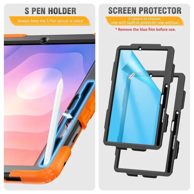 Number: SM-X730, SM-X736B Settings - About Tablets - Tablet Model). The Pen is NOT included! you can find install video on the page. ^^ Shockproof+Screen Protector This galaxy tab s11 case designed with durable anti shock material, built-in screen protector (with 2 front covers, one with built-in screen protector and one without, you can use your own protector if you want), Always keep your s11 tablet safe from shock, drop, scratch or accidental damages in daily use. ^^ Rotating Hand Strap & Stand -- This s11 tablet case provides a stable supports, with viewing/drawing/typing angles. You can hold the tablet safely by one hand and find the most comfortable viewing angle you need. also, the stand can be folded up when not in use. ^^ Multifunctional Carrying Strap -- Detachable and adjustable shoulder, both kids and adults can carry the s11 2025 tablet case around. Especially ideal for traveling! Because you can hanging it on the back of the seat during car rides like a TV. ^^ S Pen Holder & Precise Cut-outs -- Allow easy access to all ports and buttons, always keep the pen secure in place.