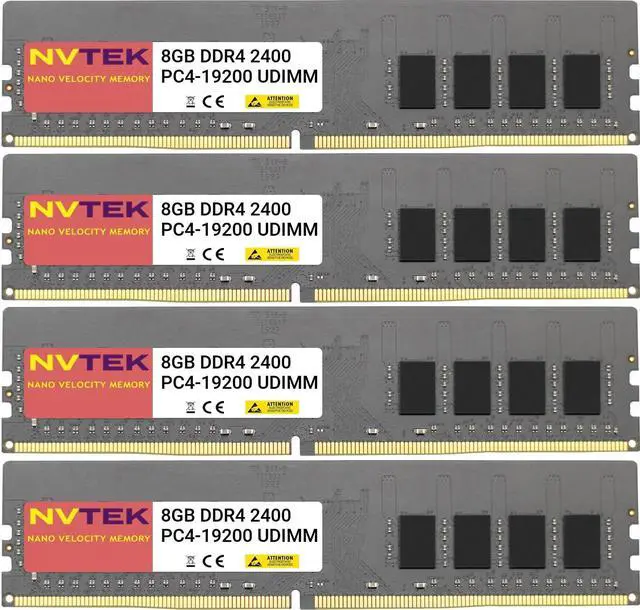 NVTEK 32GB (4X8GB) DDR4 2400MHZ PC4-19200 UDIMM 1Rx8 1.2V CL17 288-PIN Non-ECC Unbuffered Desktop PC Computer Memory KIT