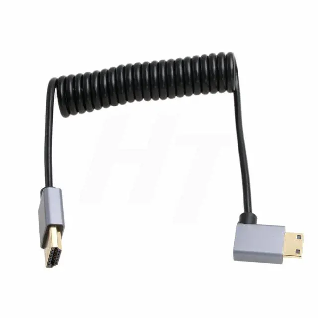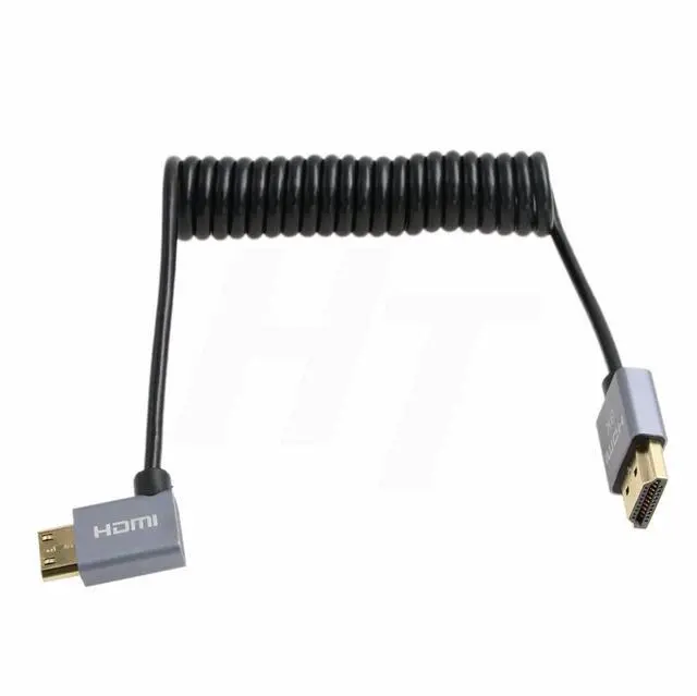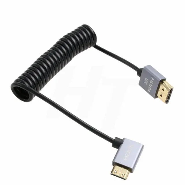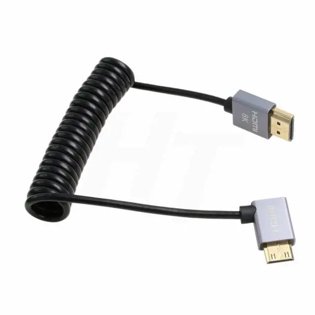 HangTon 4K 120fps 8K 60fps HDMI to Mini HDMI Cable for Canon EOS R RP 5DIV ATOMOS Ninja V Shinobi Nikon Z6 D750 Sony XR50 NEX Portkeys BM5 Monitor Type A C 2.1 Left Angle Coiled
