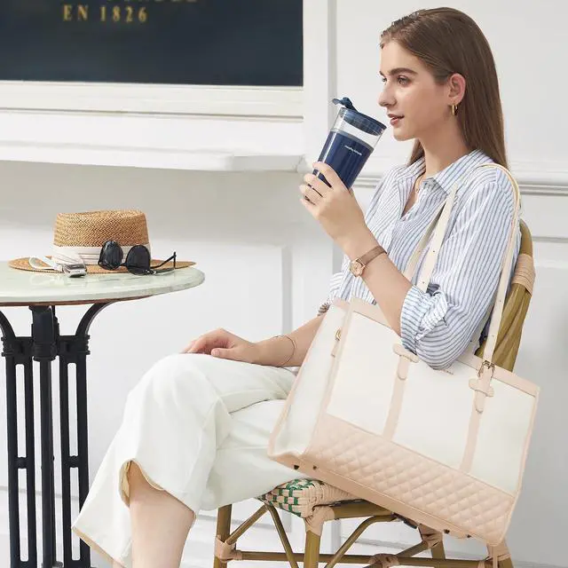 ^^ USE IN MULTIPLE SCENARIOS Our laptop tote bag is versatile enough to be used for various occasions, whether you're heading to the office, attending meetings, or going on a business trip. Ideal as a laptop tote, teacher tote bag, work bag, travel bag, or office business briefcase. Perfect gift for family, friends, and yourself. ^^ STYLISH AND CHIC DESIGN Our laptop tote bag combines the timeless elegance of leather with the trendy appeal of canvas. The combination of these materials creates a visually striking. Compared to traditional leather laptop bags, canvas laptop tote displays a youthful, fashionable, and relaxed style.