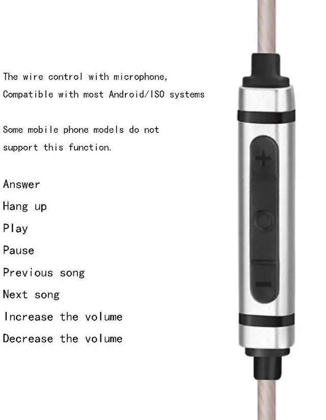 MATERIAL--The cable adapter is made of the high-purity oxygen-free copper silver-plated wire, each side include 4-strand silver-plated wire, Independent Shield among L, R. ^^ CONTROL--The wire control with microphone, compatible with most Android/ISO systems. Some mobile phone models do not support this function. Answer, hang up, play, pause, previous song, next song, increase the volume, and decrease the volume. ^^ APPLICATION--The 3.5 mm male adapter is compatible with ATH-CKR90 ATH-CKR90is ATH-CKR100 ATH-CKR100is ATH-CKS1100 ATH-CKS1100is Headphones. ^^ GOOD SOUND QUALITY--The sound characteristics of the silver-plated wire are that the overall improvement is made while retaining the original style, and the original sound orientation will not be changed.