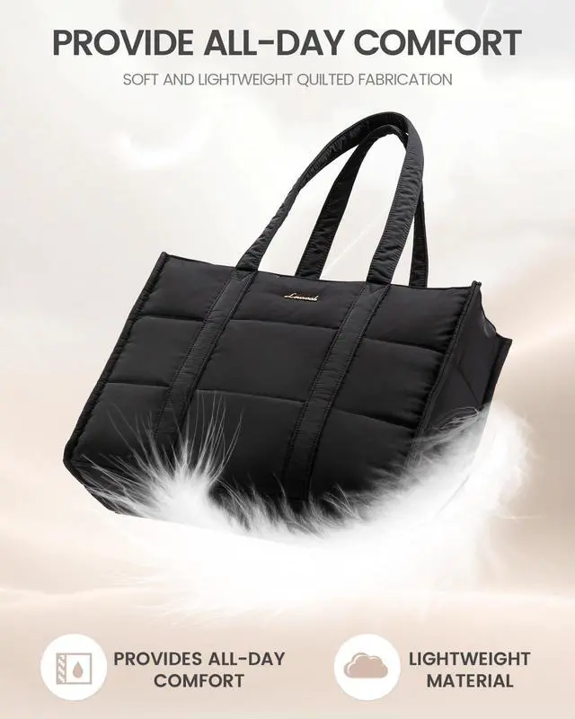• Lightening the Burden on Your Shoulders & HandsWeighing 0.99 LBS, the puffer tote bag is made from padded cotton for lightness, making it great for long time use