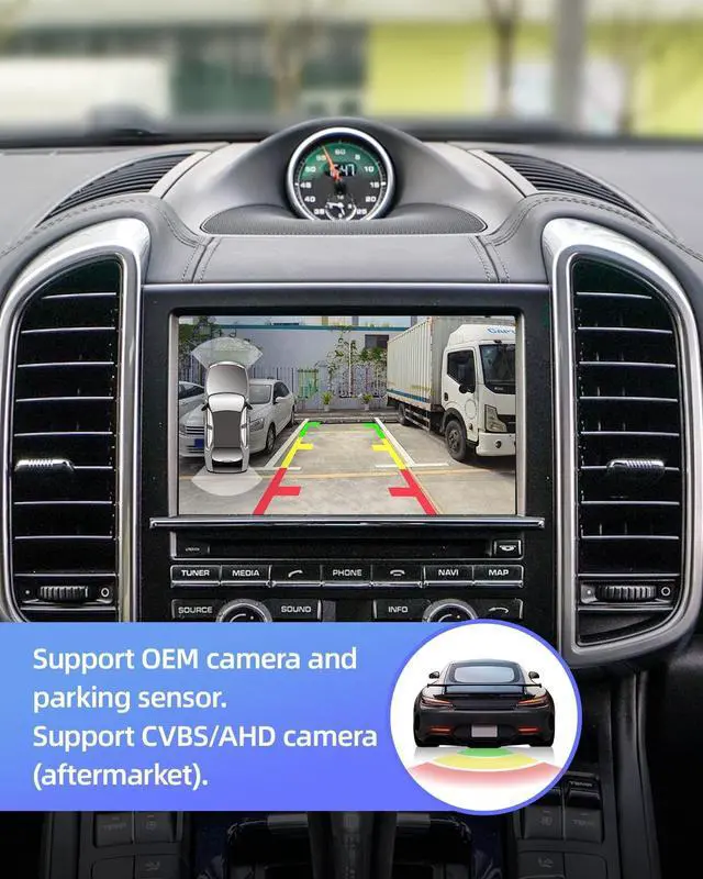 Support Android&IOS mirror link: Mobiles screen are displayed on the radio, the sound will be played by car speakers. Support U-Disk input, music and video playback. For Porsche PCM 3.1 carplay support front and rear view camera input. Support DSP sound processor and EQ adjustment, You can adjust the sound style as you like. Support OEM Camera and Parking Sensor. Support CVBS/AHD camera ( Aftermarket camera).