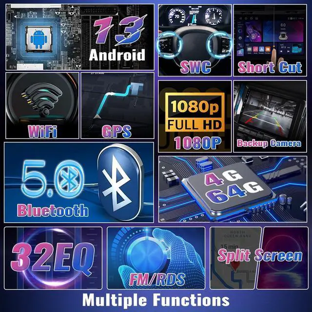 With Here We Go app, you can navigate to anywhere even without the network, only need to download needed offline map data, never worry about getting lost. After connecting the radio to wifi, you can use online navigation or download apps on the car stereo, then you can have the same experience as your mobile phone ^^ Bluetooth Hands-free & FM & 32EQ &MIC This Android 13 car stereo supports hands-free calling, playing bluetooth music, downloading phonebooks. After connected with external microphone, you can speak easily and the people you are calling can hear clearly from you. FM radio provides with 18 preset stations, channels. You can listen to the news, listen to radio music ets ^^ Backup Camera & Steering Wheel Control The 9 inch Android 13 touch screen head unit equipped with AHD backup camera, which can automatically displays the image on the unit's screen when reversing your car. Help you drive safer and park easier. It also suppports steering wheel control, you can switch songs adjust the volume and answer the phone through the steering wheel, it is very convenient and makes you more focus on driving, remember to connect the swc cable