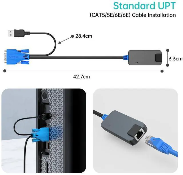 2 Pack---FEATURES - USB VGA to CAT6 Dongle for MT-1708MS-IP/1716MS-IP/1708MS/1716MS ^^ Allows custom Cat5e/Cat6 cable lengths, connecting to servers up to 230ft (70m) from KVM Switch ^^ Important noted!!!: PROPRIETARY DONGLES - Only work with MT-VIKI Cat5e KVM Switches. Can't work for other brand cat5 kvm console. ^^ High-quality dongle ensures distortion-free VGA signal transmission.