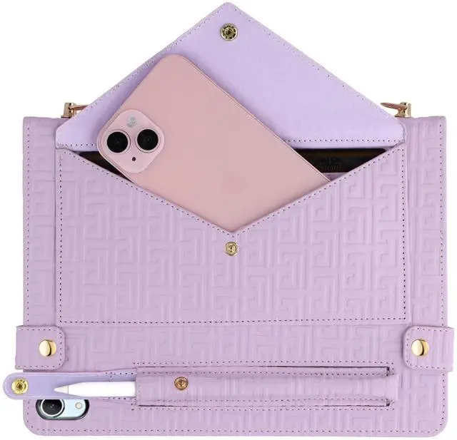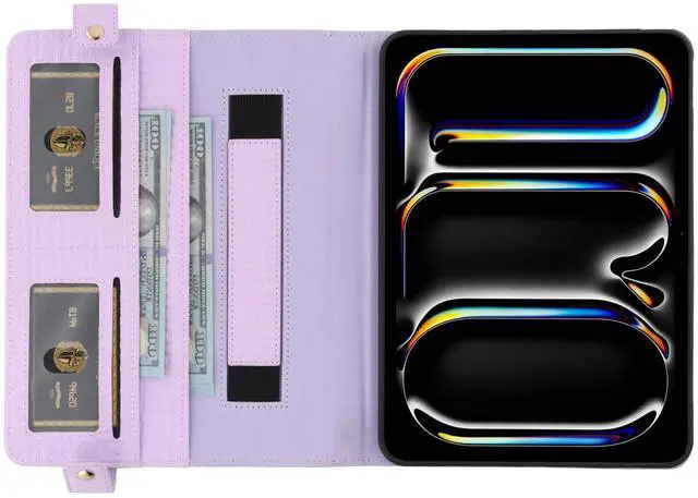 Wallet Design: An envelope pocket external allows you to store your passport and some paper files; also a pencil case pocket designed for Apple Pencil 2 or Apple Pencil Pro; interior with multiple slots for holding your cards and cash.