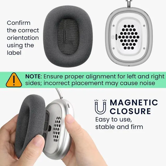 Magnetic Attachment: The ear cushions are secured by magnets, keepnig them stable and firm on your headphones