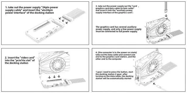EXPANDING EXTERNAL CONNECTIONS: A graphics card docking station is an external device that connects to a computer(including laptops, small PCs, handheld consoles, etc. ) through fit for Thunderbolt 3, fit for Thunderbolt 4 or USB4 interfaces, allowing the computer to expand a PCIE 16X slot ^^