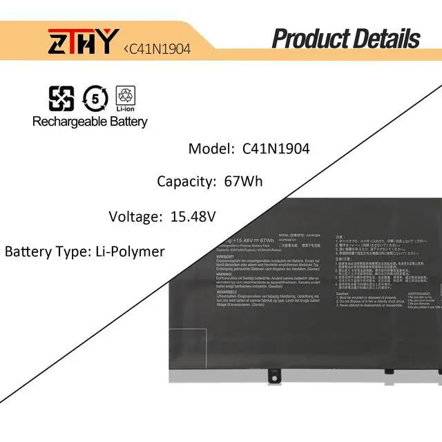 Compatible Models: Replacement for Asus ZenBook 13 BX325JA UM325SA UM325UA UX325EA UX325JA Series, Asus ZenBook 14 UM425IA UX425EA UX425JA Series, Asus ZenBook Flip 13 UX363EA Series, Asus ZenBook Flip S UX371EA Series, Asus ZenBook S UX391UA UX393EA