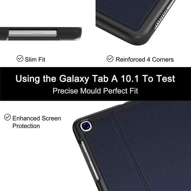 -- Note: NOT Fit 2016 Released Samsung Tab A 10.1 (SM-T580/T585/T587/P580/P585/P587) or any other model tablet. ^^ Designed for Folio Stand - With dual standing positions for enjoying the most comfortable viewing angles. ^^ Designed for Full Protection - Soft TPU back shell protect your new Galaxy Tab A 10.1 from shocks, drops and impacts. ^^ Designed for Snug Fit - With precious cutouts and full access to all features (Cameras, Speakers, Ports and Buttons). ^^ Designed for Secure Closure - Magnet secure the case closure, it's easy and safe to snap on and off.